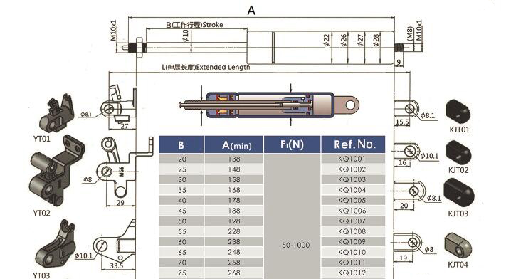 注:由于氣彈簧是非標準的,以上僅為型號的一部分。我們可以根據客戶的要求定制。