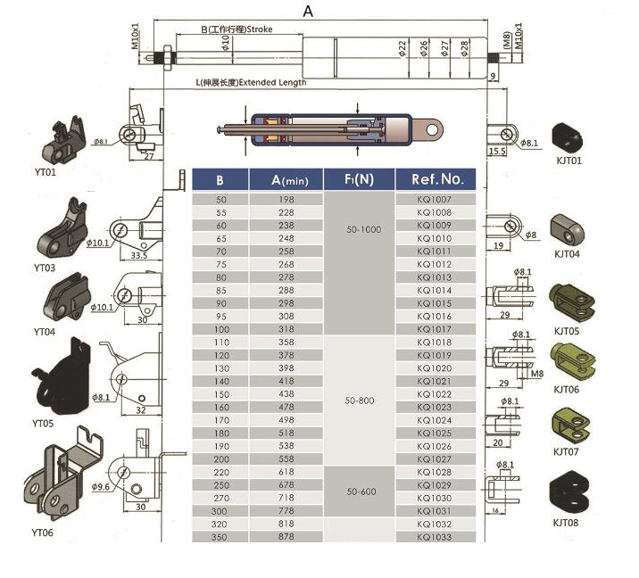 注:由于氣彈簧是非標準的,以上僅為型號的一部分。我們可以根據客戶的要求定制。